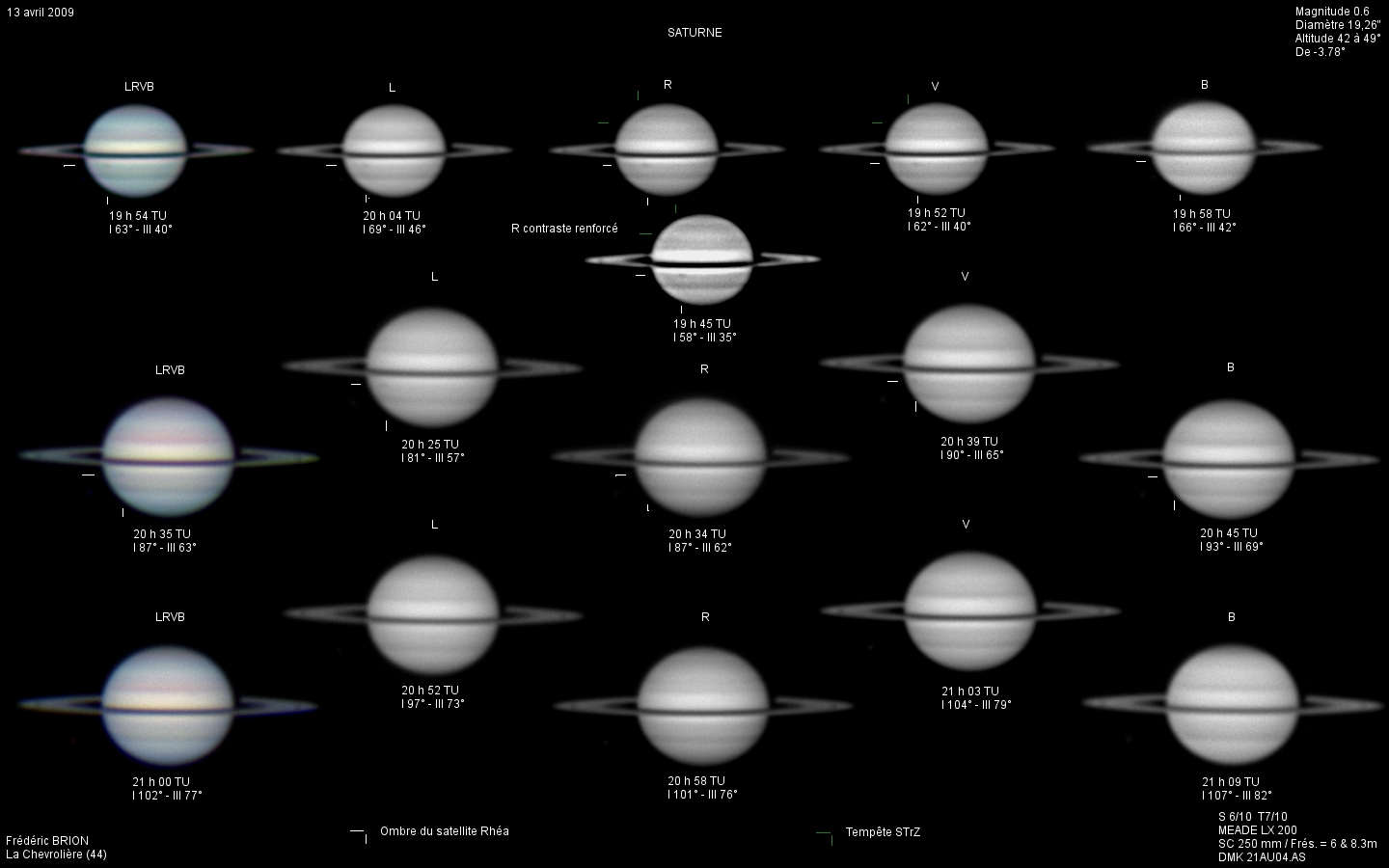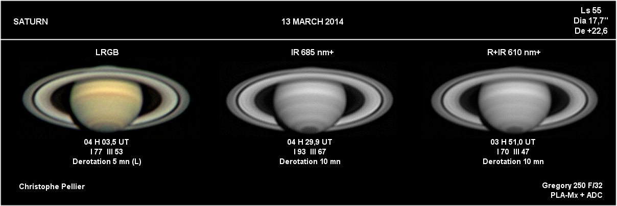 - Paramètres de prise de vue : Films SER réalisés avec filtres LRVB astronomik + + 685 Baader + RG610 Baader et correcteur de dispersion atmosphérique