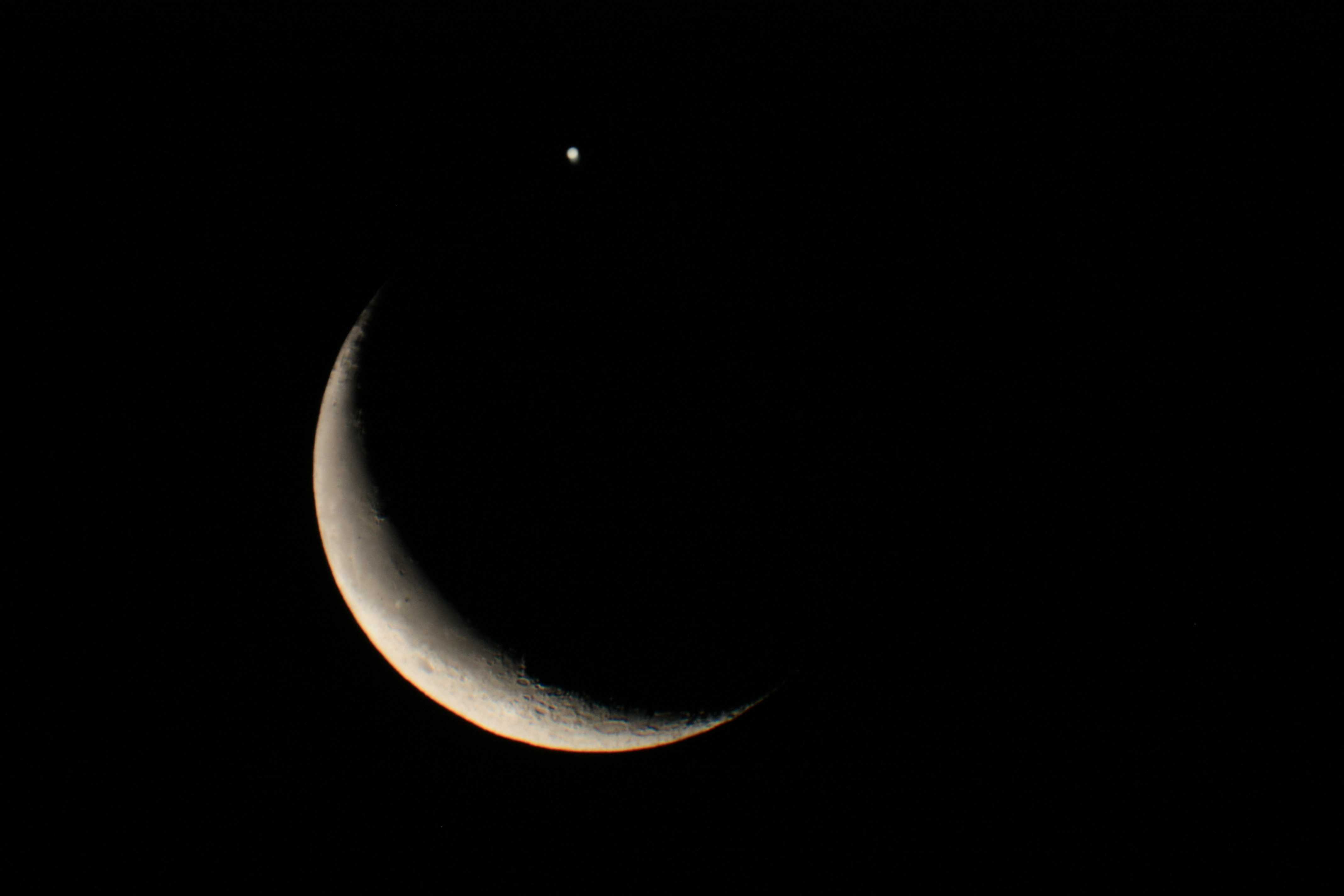 Paramètres de prise de vue : Une pose de 1/13s - 400 Iso prise à 2h16min TU - Commentaire : Il est 4H16min du matin, Jupiter flirte avec le côté non éclairé de la Lune