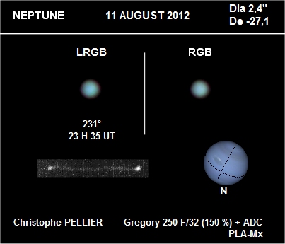 - Instrument et combinaison optique utilisée : Caméra vidéo INOVA PLA-Mx au foyer d'un télescope Grégory D=250mm F=8000mm