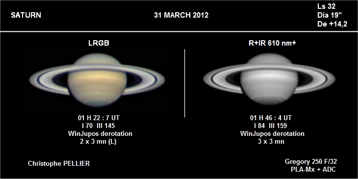 - Paramètres de prise de vue : Films SER réalisés avec filtres LRVB astronomik + RG610 Baader et correcteur de dispersion atmosphérique